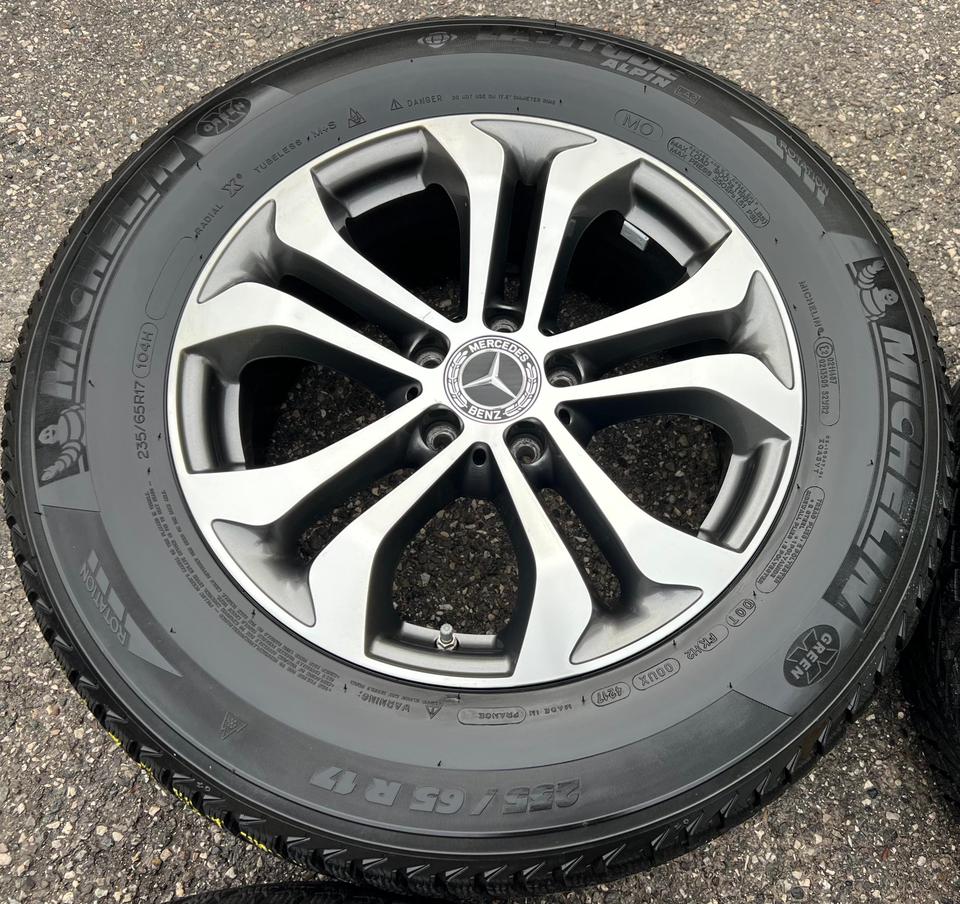 ★ KOSTENLOSER – VERSAND ★ Zum Verkauf stehen vier gebrauchte original Mercedes-Benz Alu Winterkompletträder für die Modelle Mercedes-Benz – GLC X253 mit den Winterreifen in der Größe 235/65R17 104H Michelin Latitude Alpin LA2 mit Schneeflockens…